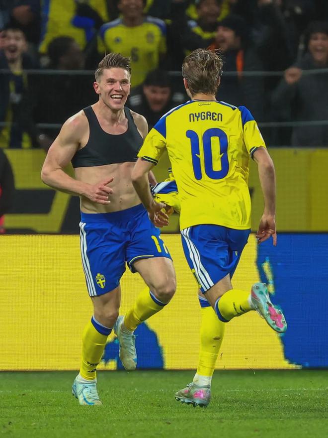 哲凯赖什2场附加赛打进4球,居功至伟!堪称是民族英雄!这球哲凯是门前机敏补射得手,进球后疯狂庆祝,可以说他几乎是一己之力把瑞典带进了世界杯,2场4球啊,还有个绝杀!